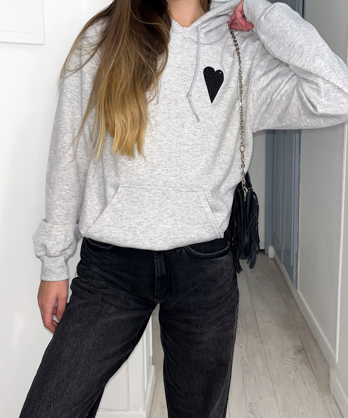 HOODIE GLITTER BLACK ASH GREY