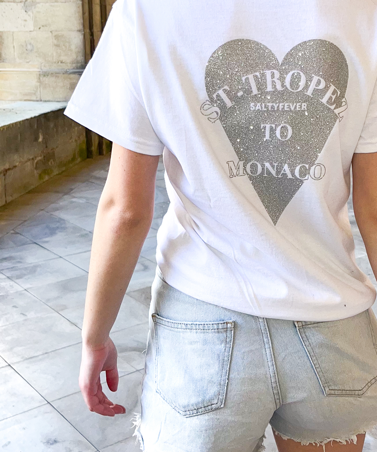 T-SHIRT BLANC GLITTER ARGENTÉ